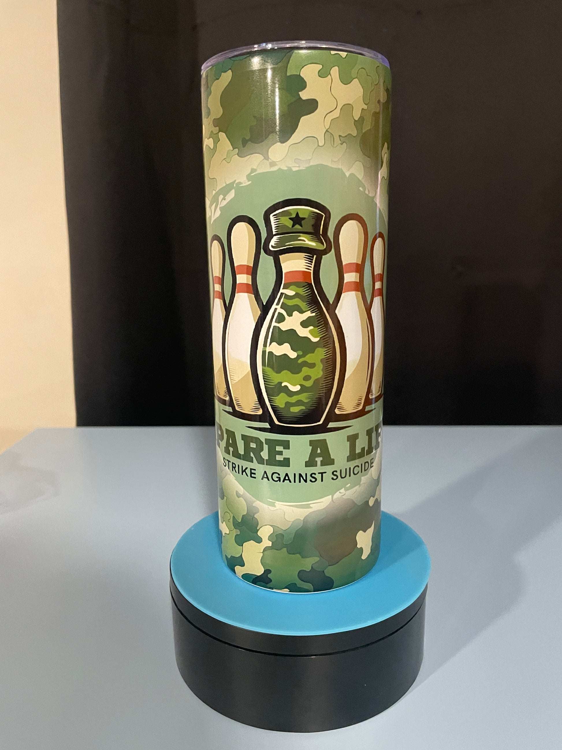 Stay hydrated in style with our 20oz Tumbler! Made from sturdy material, it keeps your drinks cool while showing off a patriotic design. And the best part? Your purchase helps fund resources and tournaments to fight against veteran suicide. Join the cause and make a difference today!