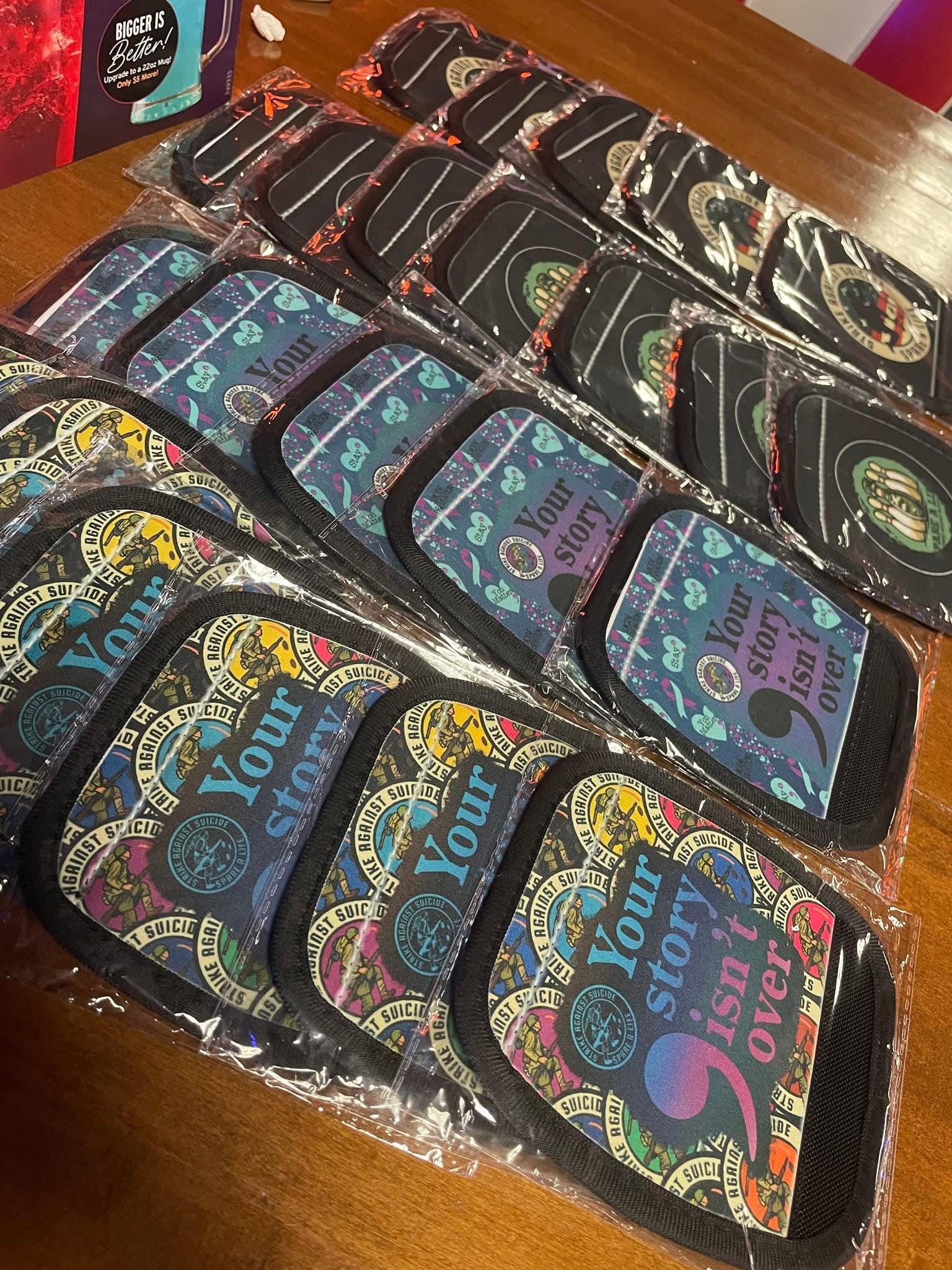 Made by our partners at Klutzee Panda Creations, these handle covers will cushion bowling tote handles, making it more comfortable to pull those totes around the lanes and through the casinos. They have various designs supporting the cause and the design you receive will be chosen at random.